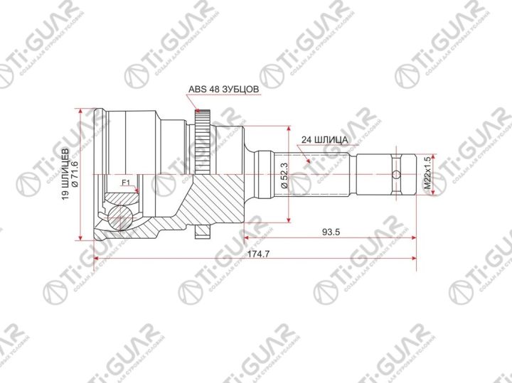 ШРУС наружный /передний левый /правый /TI-GUAR для Daihatsu Terios 1997-1999 Toyota Cami 1999-; 19*52*24; TG-2812; (CO-7510A TG2812Z48 0910012A48) DA012 DA012A48 4341087401